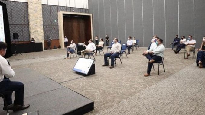 Mérida, Yucatán, 8 de abril de 2020.- Senadores, diputados federales y estatales, así como alcaldes, dirigentes empresariales y líderes obreros, convocados por el Gobierno del Estado, evaluaron las estrategias que buscan reactivar la economía de Yucatán, ante la emergencia sanitaria por el coronavirus.