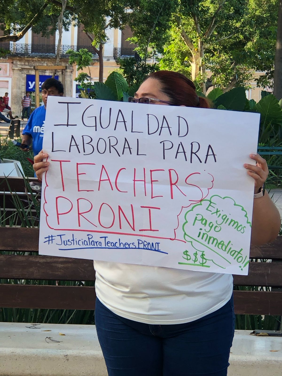 Mérida, a 19 de febrero de 2025.- Este miércoles, maestros del Programa Nacional de Inglés, PRONI protestaron frente al Palacio de Gobierno para exigir el pago de sus salarios correspondientes a los meses de enero y febrero, además de otras prestaciones que como trabajadores les corresponden.
