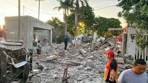San Fco. Campeche, Campeche, 19 de diciembre del 2022.- Una explosión causada por acumulación de gas LP en una vivienda del fraccionamiento Isla del Carmen 2000, en el sur de Ciudad del Carmen, dejó un saldo de dos personas muertas y dos lesionadas, además de daños estructurales en otras 20 casas.