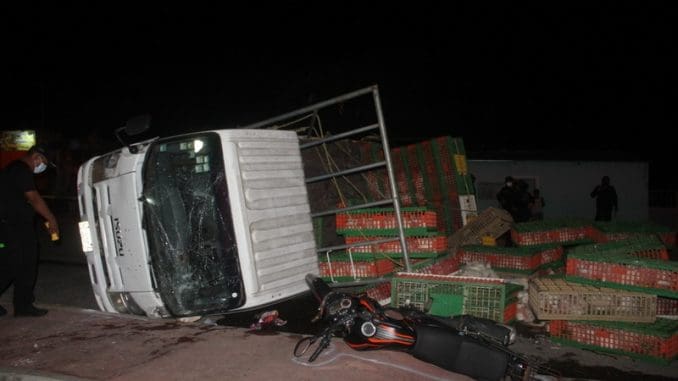 Tizimín, Yucatán, 29 de junio de 2022.- Una pareja que viajaba con tres menores de edad a bordo de una camioneta en la cual transportaban pollos vivos volcó en la calle 49 por 22 de este municipio, resultando la familia con diversas lesiones que ameritaron su traslado al hospital.
