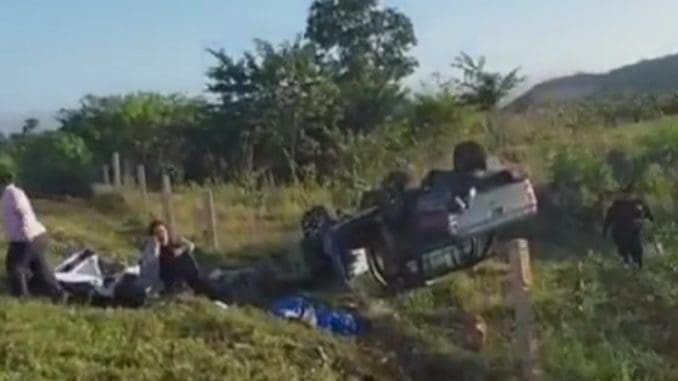 San Fco. Campeche, Campeche, 4 de enero del 2023.-Un total de tres personas lesionadas dejó la volcadura de un automóvil, tras salirse de la carpeta asfáltica a la altura del kilómetro 48 de la carretera Campeche-Mérida, por la cabecera municipal de Hecelchakán.