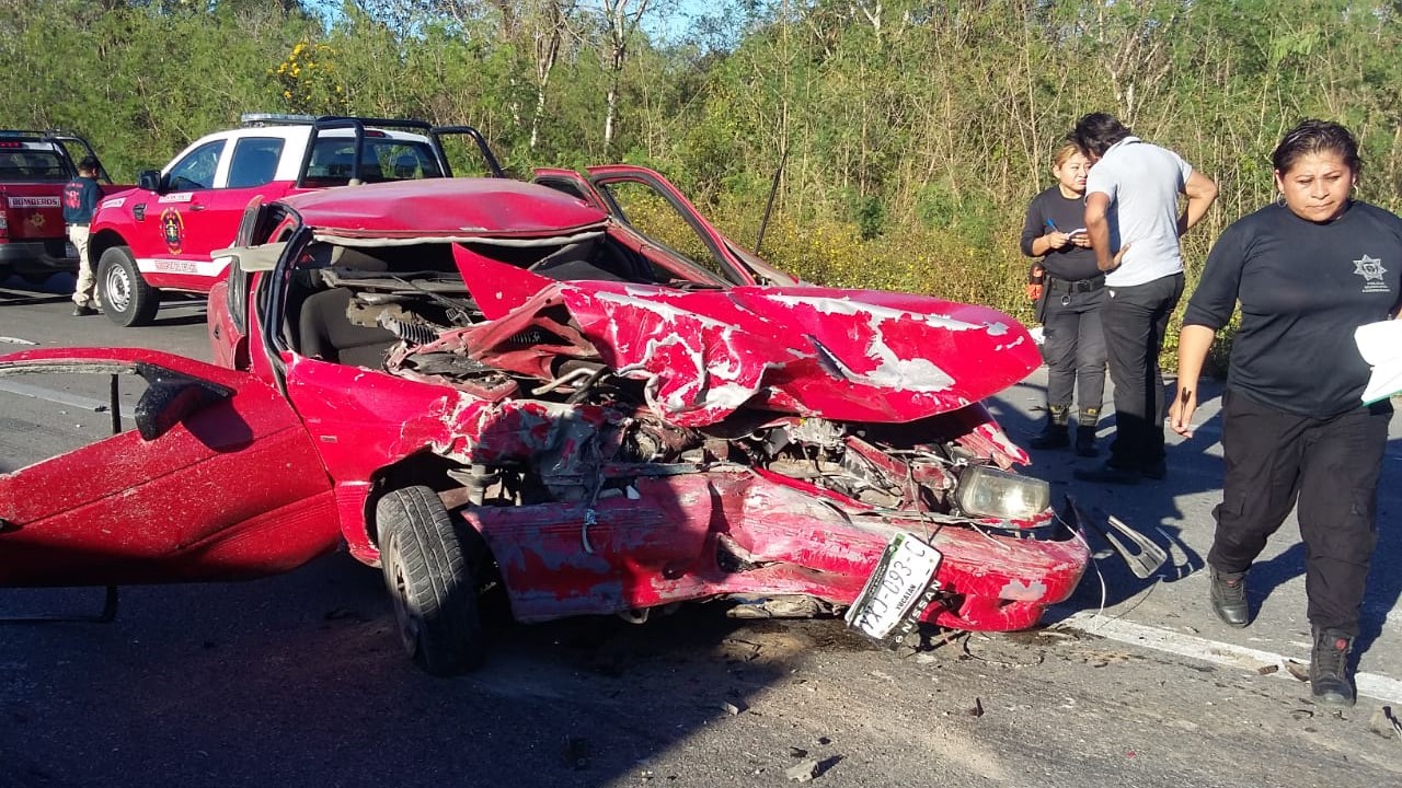 El percance sucedió alrededor de las 18:00 horas del sábado en la vía Mérida-Acanceh, cuando el conductor de un Tsuru, por intentar ganar a un vehículo, giró a su izquierda para entrar a la población, sin embargo, no lo logró y fue impactado por una camioneta Toyota.