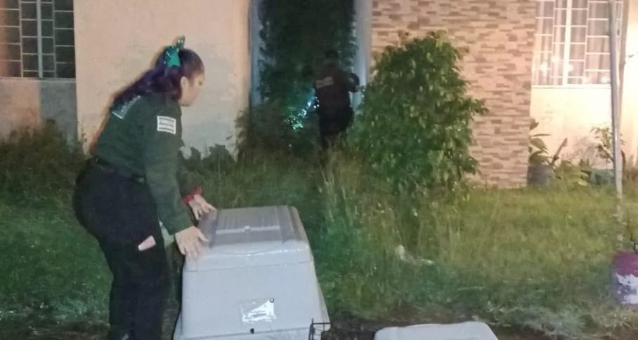 Indicaron que los pecaríes ingresaron a un predio deshabitado con mucha maleza, por lo que los oficiales ingresaron junto con los vecinos para verificar el reporte.