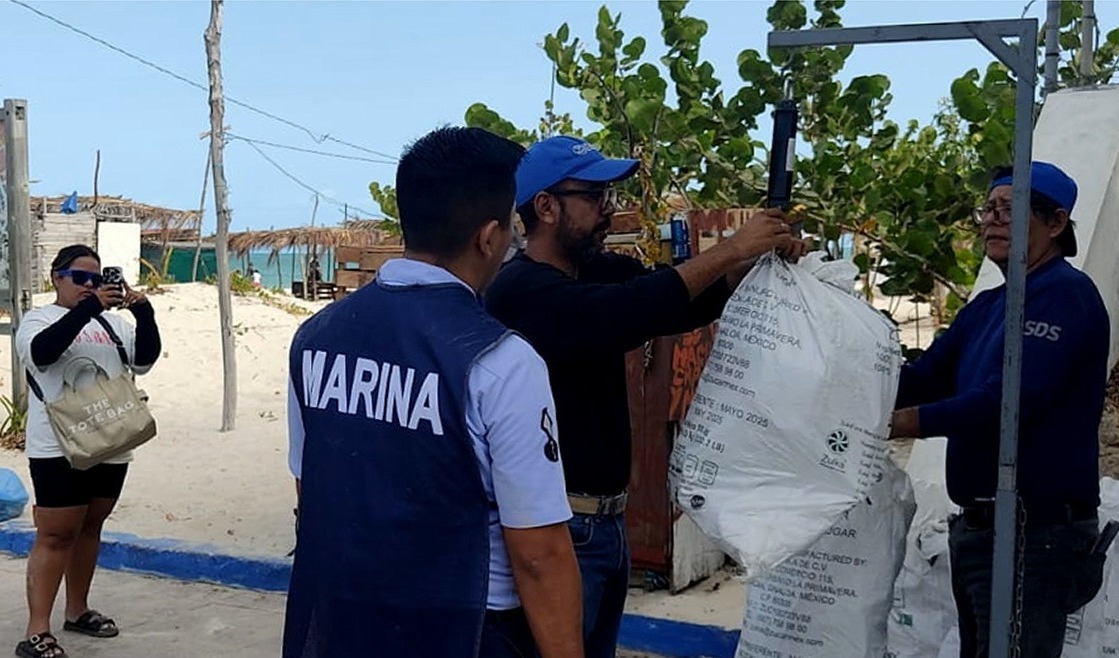 En estas tareas participaron 70 marinos, que estuvieron acompañados por personal de la Secretaría de Desarrollo Sustentable, y colectivos, que acudieron a realizar el levantamiento de los desechos, como parte del programa “Saneamiento de Playas y Manglares de Yucatán”.