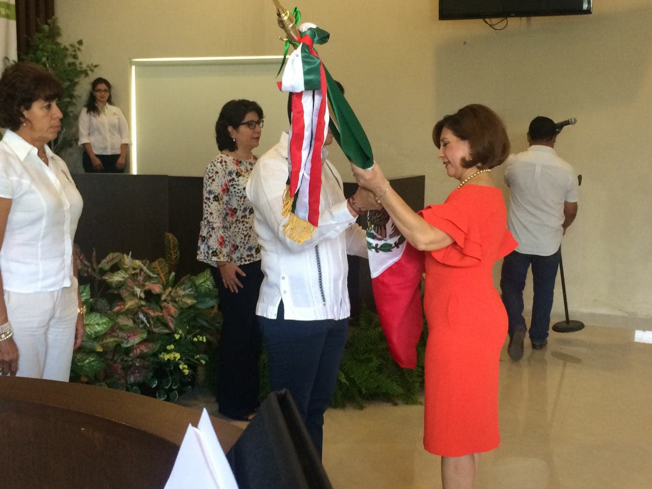 La comisionada presidenta, Susana Aguilar Covarrubias fue la encargada de recibir la bandera de México por parte de Carlos Carrillo Paredes, subsecretario de Desarrollo Social y Asuntos Religosos del Gobierno del Estado.
