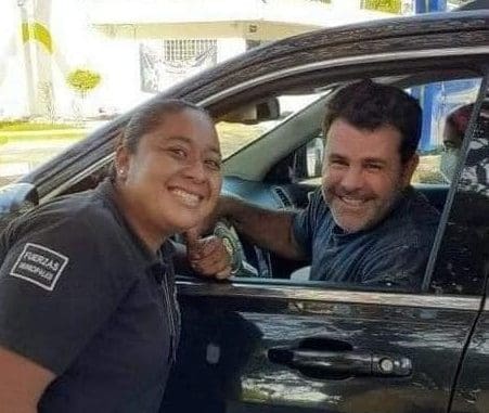 El actor y cantante Eduardo Capetillo fue captado por una oficial de fuerzas especiales (según dice su uniforme) en la entrada del Puerto de Sisal. El artista se encuentra desde hace varios días en Yucatán con su familia. La foto ha sido compartida en las redes sociales y cuestionada porque tanto como la policía como el actor no llevan el cubrebocas puesto a pesar de que están a menos de un metro de distancia.