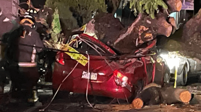 Provocaron el colapso de un árbol sobre un auto en el que se encontraba una pareja.