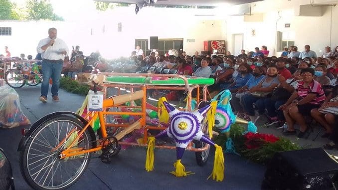 Esta mañana, en las instalaciones de la Dirección de Desarrollo Social, el Ayuntamiento entregó apoyos navideños, que incluye 220 pavos, 440 piñatas, 880 kilos de dulces y 8 mil 800 juguetes, como estímulo y reconocimiento a la labor realizada durante el año en sus comunidades.
