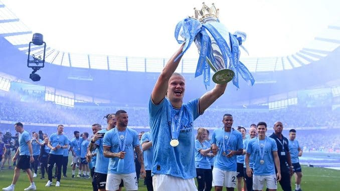 Ciudad de México, México, 27 de mayo del 2023.-El noruego Erling Haaland, delantero del Manchester City, ha culminado la temporada con un nuevo éxito, ser reconocido como el mejor jugador joven y el mejor jugador de la temporada de la Premier League.