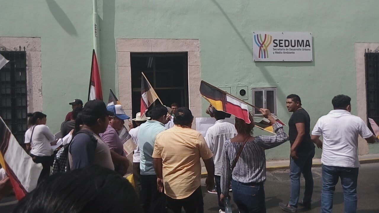 Con pancartas y mantas en mano, los inconformes cerraron el acceso a la calle 64 con 53 y 51 del Centro Histórico de Mérida, donde se encuentran las oficinas de SEDUMA.