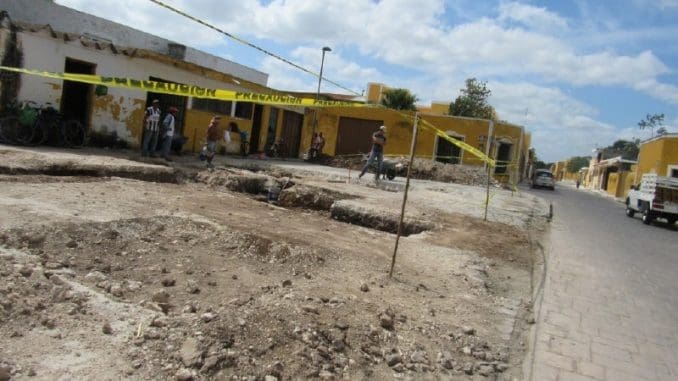 Izamal, Yucatán, 7 de febrero del 2020.- Vestigios coloniales fueron hallados en una construcción que se realiza en la ciudad de Izamal mientras hacían excavaciones al suelo para construir lo que al parecer será una plaza comercial.