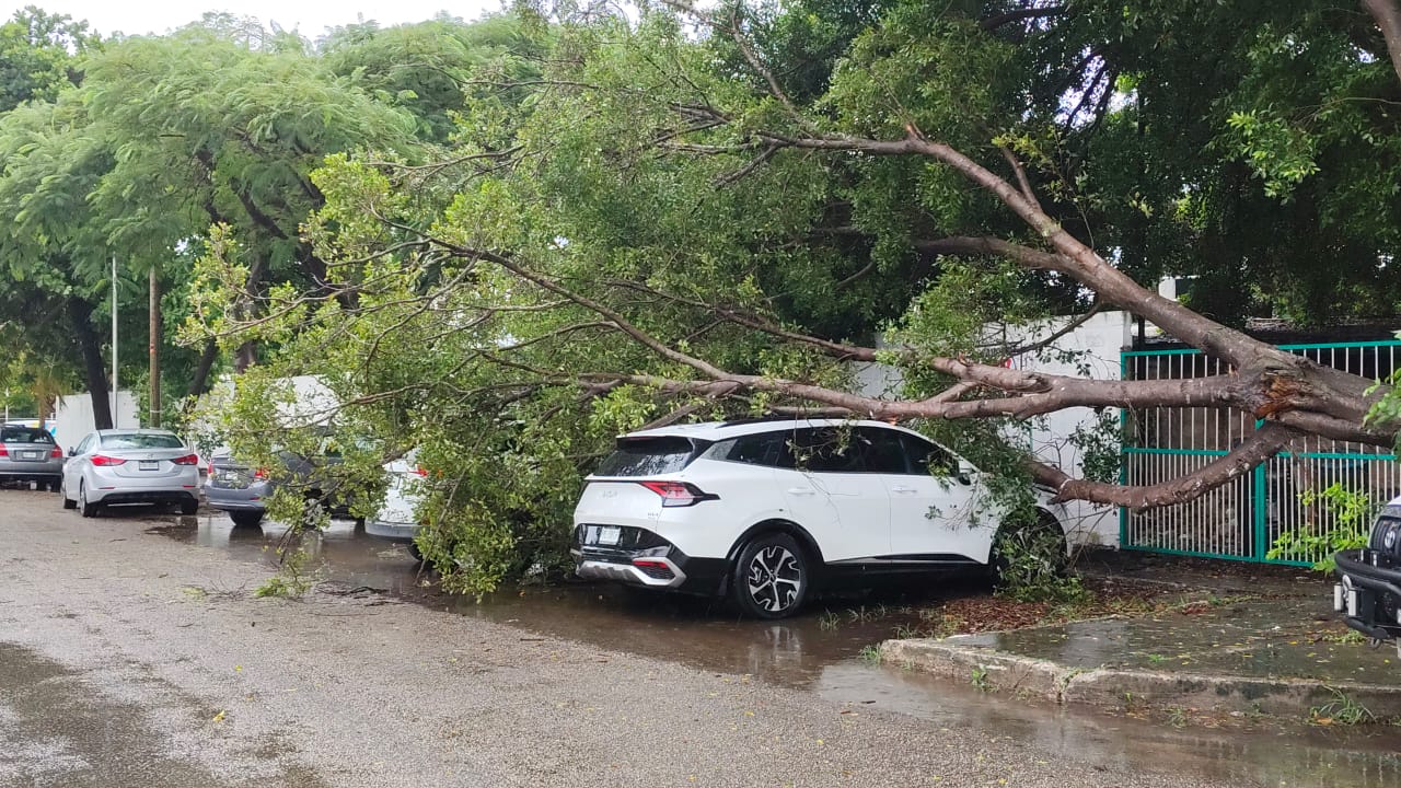 Cabe señalar que se reportó que en la colonia Hidalgo, al poniente de Mérida frente a una escuela del mismo nombre, un árbol cedió ante la lluvia y cayó sobre dos vehículos cuyos propietarios resultaron ser maestros de este centro educativo. Por suerte no hubo lesionados, solo daños materiales.