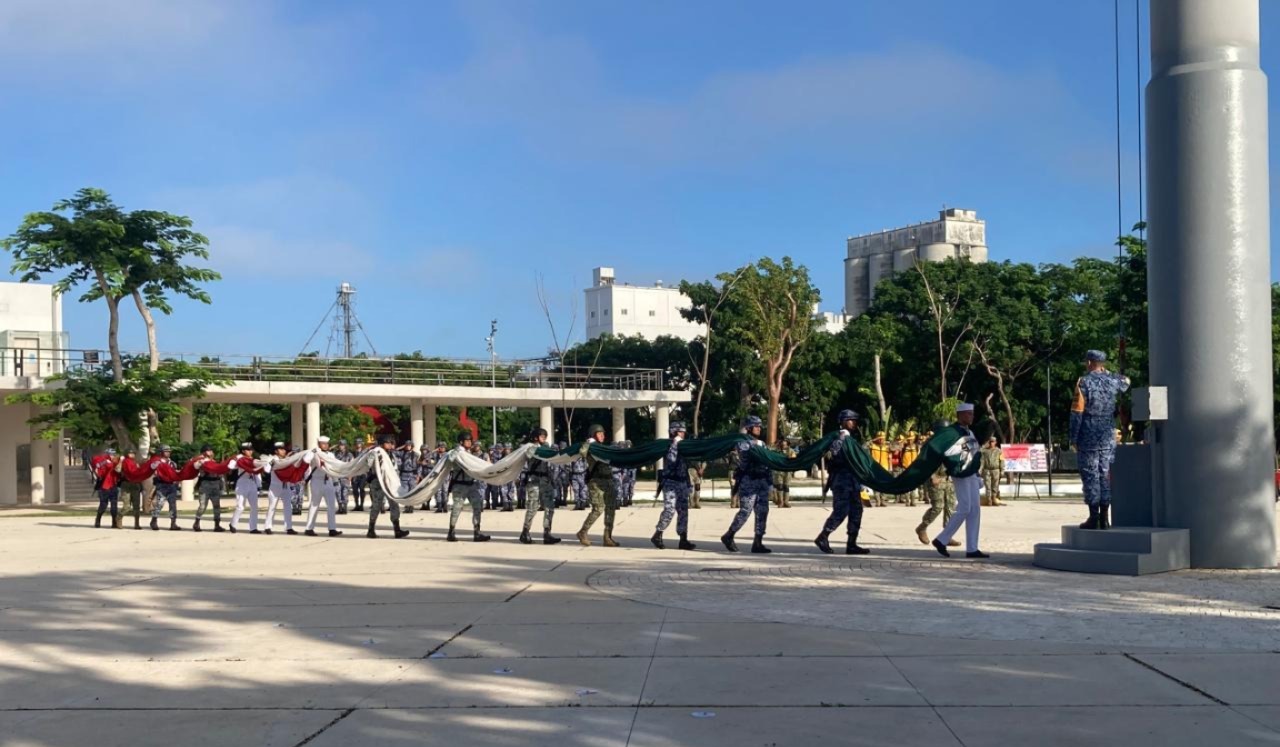 Mérida, a 19 de septiembre de 2024.- Con el izamiento de bandera a media asta, en el parque de La Gran Plancha, se honró la memoria de las personas que han fallecido por algún fenómeno natural en Yucatán, por lo que además se guardó un minuto de silencio.