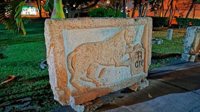 Agregó que al costado derecho del animal hay una inscripción con la palabra ‘TIGRE’, escrita sobre otra leyenda, casi ilegible a simple vista, que reza: ‘Yucatán, tierra de fieras’.