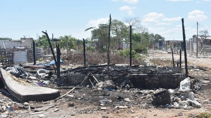 Mérida, Yucatán, 10 de junio del 2023.-Cerca del mediodía de este viernes una casita de cartón en la zona invadida de Flamboyanes comenzó a incendiarse, lo que generó la movilización del cuerpo de bomberos de la SSP.
