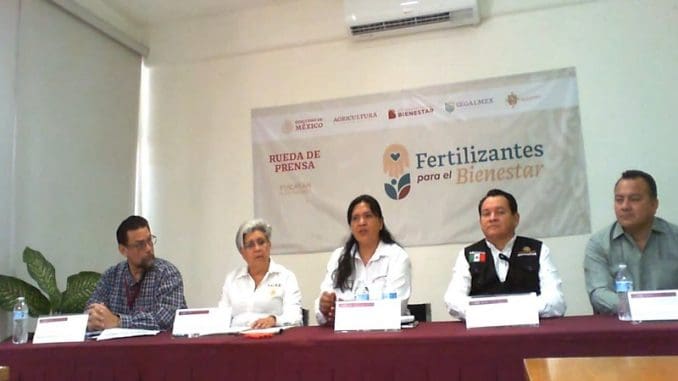 En rueda de prensa, la directora general de Suelos y Agua de Agricultura, Areli Cerón Trejo, precisó que los agricultores recibirán los fertilizantes de forma directa sin intermediarios, para incrementar el rendimiento de sus cultivos, principalmente maíz, frijol, arroz y calabaza.