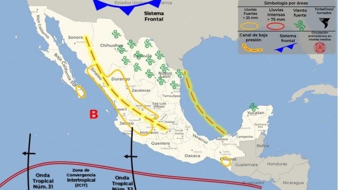 El SMN señala que la masa de aire polar que impulsa el citado frente frío ingresar el martes por el norte del país y luego ingresará al Golfo de México donde entrará en contacto con una amplia vaguada, que se ubicará sobre la Península de Yucatán, lo cual provocará precipitaciones y tormentas eléctricas fuertes que durarán hasta el fin de semana.