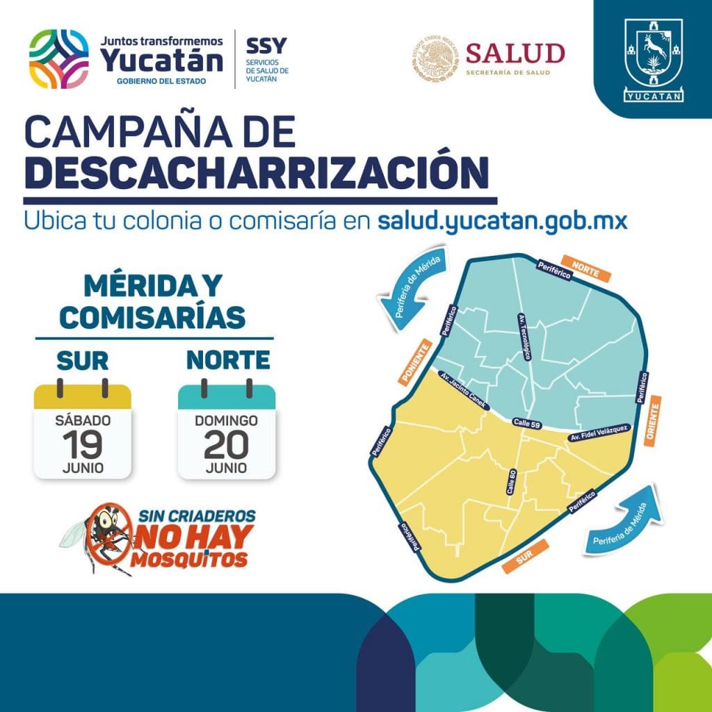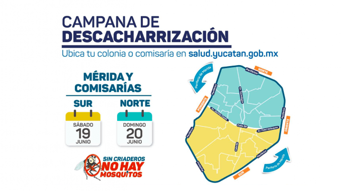 En tanto, mañana domingo 20 de junio corresponderá a la zona norte de la capital, por lo que se visitarán las colonias: 15 de mayo, Alcalá Martín, Alemán, Amapolita, Atlántida, Benito Juárez Norte, Brisas de Chuburná, Brisas del Norte, Buenavista, Bugambilias, Cámara de la Construcción, Campestre, Carrillo Ancona, Chenkú, Chuburná de Hidalgo, Chuburná Inn, Chuburná Vista Alegre, Chuminópolis, Colonia Yucatán, Cordemex, Del Arco, Del Carmen, Díaz Ordaz, El Cedral, El Porvenir, El Rosario, Elefante Grande, Emiliano Zapata Nte., Emiliano Zapata Ote., Fco. de Montejo, Fidel Velázquez, Florida Norte, Fracc. del Parque, Fuente Dorada, García Ginerés, Girasoles, Gonzalo Guerrero, Hacienda Real, Inalámbrica, Industrial, Itzimná, Jacinto Canek, Jardines de Chuburná, Jardines del Norte, Jesús Carranza, Juan B. Sosa, La Antigua, La Castellana, La Huerta, La Vaca Feliz, Las Águilas, Las Arboledas, Las Brisas, Las Palmas, Las Vigas, Lázaro Cárdenas, Leandro Valle, Limones, Lindavista I y II, Loma Bonita, López Mateos, Los Reyes, Magnolias, Manuel Ávila Camacho, Máximo Ancona, Maya, Mayapán, Melchor Ocampo, Mérida ISSSTE.