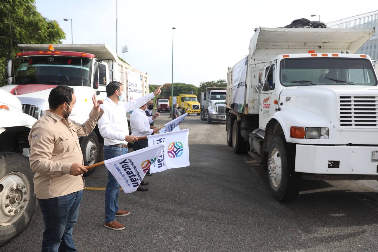 Mérida, Yucatán, 19 de junio de 2021.- Con la meta de recolectar más de 500 toneladas de cacharros, arrancó la Campaña de Descacharrización en Mérida y sus comisarías, la cual se realizará hoy sábado y mañana domingo con el objetivo de contribuir a la eliminación de criaderos de moscos en dichas zonas y, con ello, prevenir las enfermedades transmitidas por vectores ante la temporada de lluvias.
