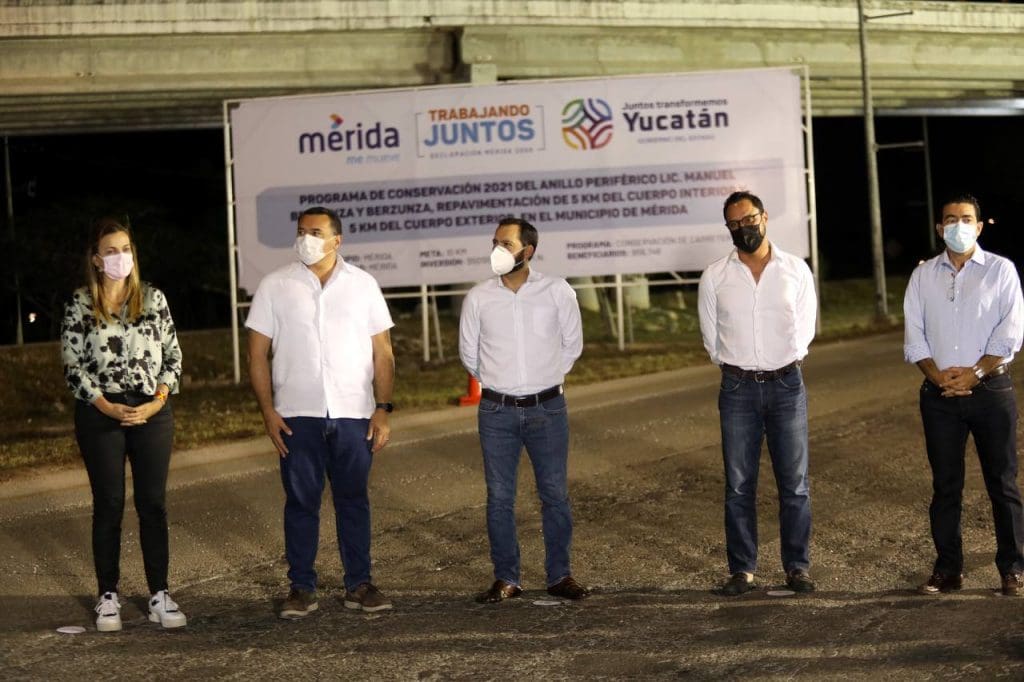 Asimismo, Crespo Méndez indicó que, como parte de esta obra, el Gobierno del Estado estará repavimentando 7 kilómetros del Anillo Periférico y el Ayuntamiento de Mérida estará interviniendo 3 kilómetros de esta vía, y para ello, se estarán realizando labores de fresado, renivelación, bacheo, construcción de carpeta de concreto en caliente de 8 centímetros de espesor, riego de tapón y se estará colocando señalamiento.