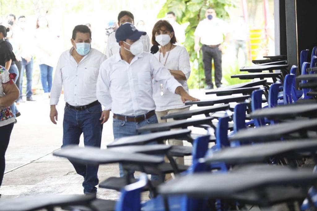 En gira de trabajo Vila Dosal reiteró que la prioridad del Gobierno del Estado ahora, es el retorno seguro a las clases de forma presencial por lo que se atenderán las necesidades de los planteles escolares para asegurar que cuenten con los servicios básicos de luz y agua, además de que se les brindará los insumos necesarios para aplicar los protocolos sanitarios.
