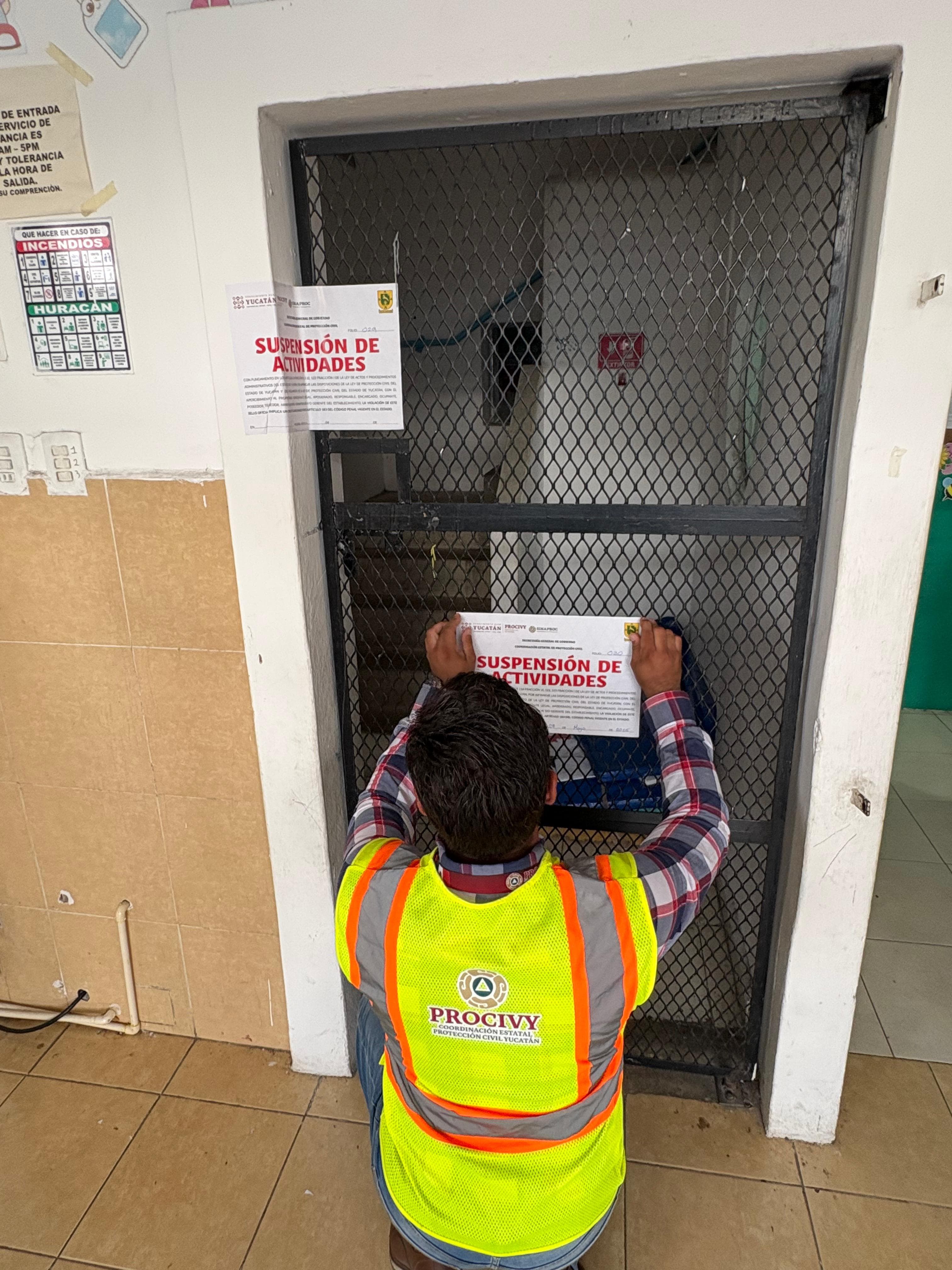 Mérida, a 30 de mayo de 2025.- Protección Civil de Yucatán (Procivy) inspeccionó las instalaciones del Instituto Educativo Peninsular de Yucatán, ubicada al poniente de la ciudad, donde encontró irregularidades, como no contar con programa interno, señalética adecuada y sus extintores han caducado, por lo cual se procedió a suspender las actividades en dicho plantel.