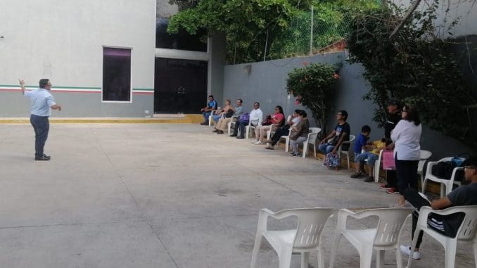 El personal de la delegación colocaron sillas a un metro y medio de distancia en la sala de espera y a todas las personas se les aplica gel antibacterial cuando ingresan a las oficinas, incluso hay personal médico, el cual está pendiente ante cualquier contingencia.