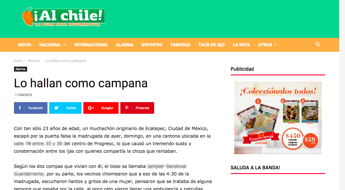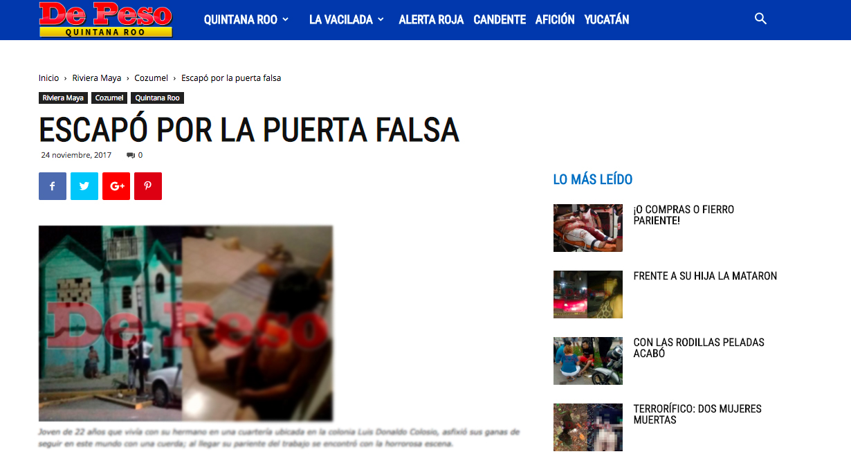 Cabe señalar que la diputada panista Kathia Bolio Pinelo en semanas pasadas presentó una iniciativa que atiende la violación de los derechos de las audiencias, y que evitaría la revictimización de personas que fallecieron de manera trágica o sufrieron algún accidente; y que son expuestas en publicaciones, principalmente en periódicos amarillistas [físicos o digitales] que —a todo color y en portada— difunden imágenes de accidentes violentos, de personas que se quitaron la vida, o que aparecen desmembradas. (Javier Escalante Rosado)