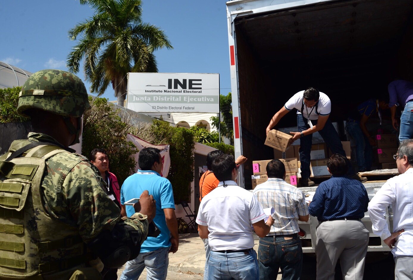 De acuerdo al presidente del Consejo Local del Instituto Nacional Electoral (INE) en Yucatán, Fernando Balmes Pérez, alrededor de las 9 horas llegaron a la Caseta Fitosanitaria de Halachó, resguardados por la Secretaría de la Defensa Nacional (SEDENA) y de la Policía Federal, 5 camiones con cerca de 4 millones y medio de boletas para la elección de las diputaciones federales, senadurías y la presidencia de la República, así como actas y documentos auxiliares apoyo para el registro de las acciones que se llevarán a cabo en las casillas y en los consejos distritales, así como los documentos que se remitirán para el Programa de Resultados Preliminares (PREP).