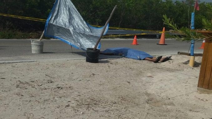 Los hechos se registraron cerca de las 7:00 de la mañana de este lunes, cuando Efraín M.L., de 55 años de edad, se encontraba embutiendo con arena un espacio junto a la orilla de la carretera estatal costera Chabihau – Santa Clara, dónde se encuentra un local de renta de palapas «el amigo Pomo».