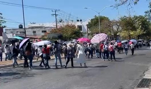 Ante la negativa de las autoridades educativas decidieron marchar sobre la avenida Itzées en  dirección al Aeropuerto de Mérida, donde pretenden bloquear el acceso para que sus demandas sean escuchadas.