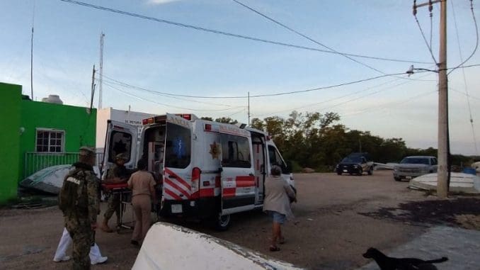 Al ser valorados por los médicos navales, fue llevado en una lancha rápida, pero al puerto de Río Lagartos, ya que, se encontraba más cercano de tierra.