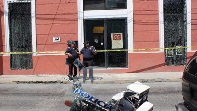 Mérida, Yucatán, 25 de enero de 2020.- Un presunto asesinato se registró este sábado en un predio del centro de la ciudad, donde aparentemente un residente canadiense mató a su esposa (también de esa nacionalidad), a la que habría estrangulado con un cable, y para cerciorarse que estuviera ya muerta la habría asfixiado cubriéndole la cara con una sábana y hasta presuntamente la acuchilló.
