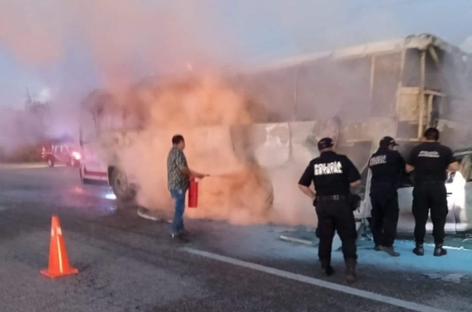 En tanto, varios pasajeros que iban en el autobús salieron con golpes, pero lograron salir a tiempo del camión envuelto en llamas.