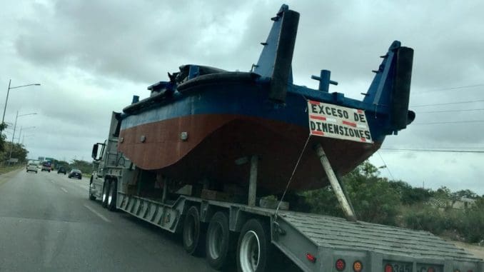 Un camión transporta lo que parece ser la carena de un barco sobre el periférico de Mérida. Llamó la atención de propios y extraños el tamaño que sobrepasa las dimensiones normales en la vía más transitada de Mérida.