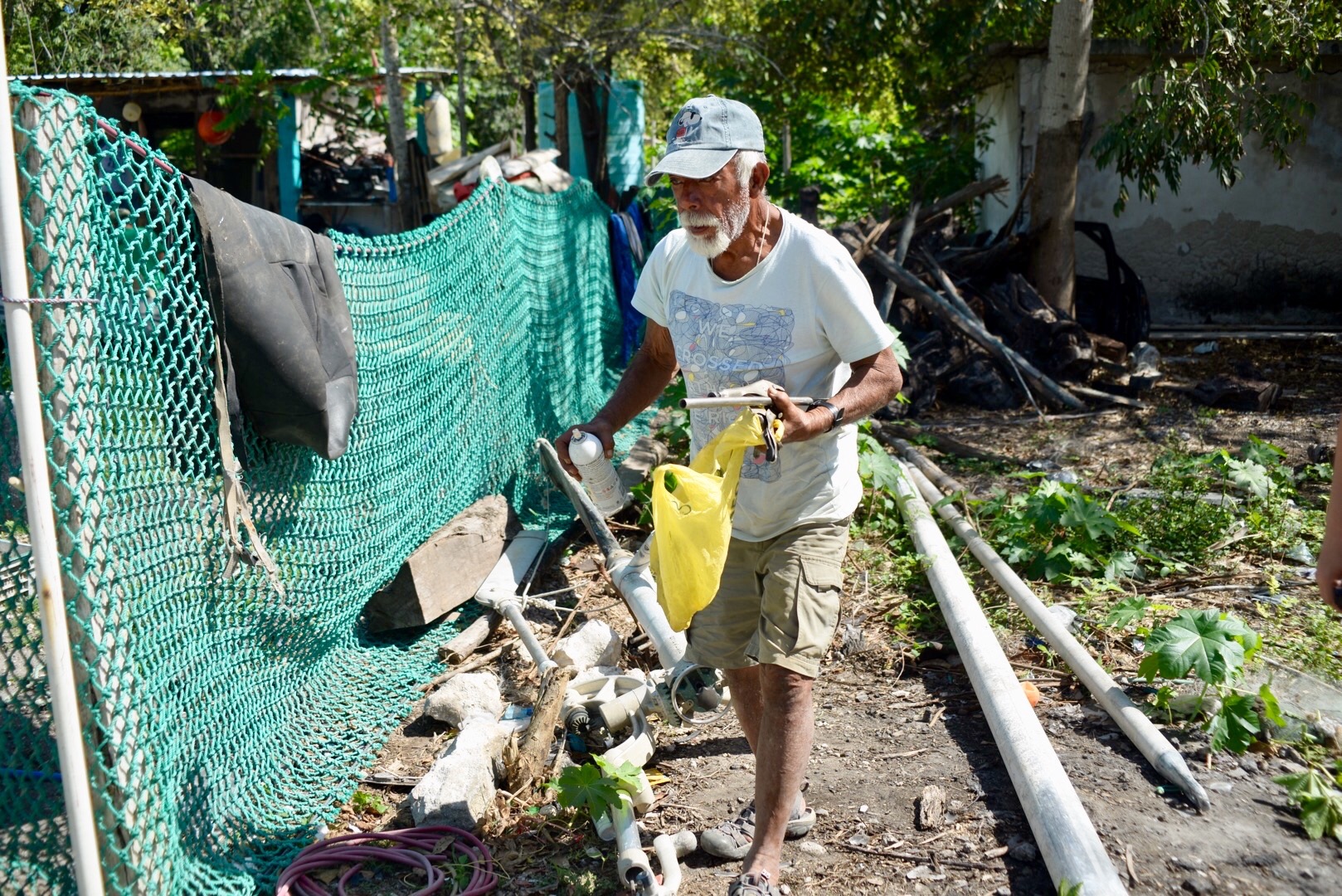 En chanclas y bermuda, con una playera manchada de arena y una gorra con la imagen de “Snoopy”, don Carlos recibe a los reporteros, no tiene problema en narrar su historia, pues quizás contándola alguien pueda enterarse que necesita ayuda para remolcar el velero.