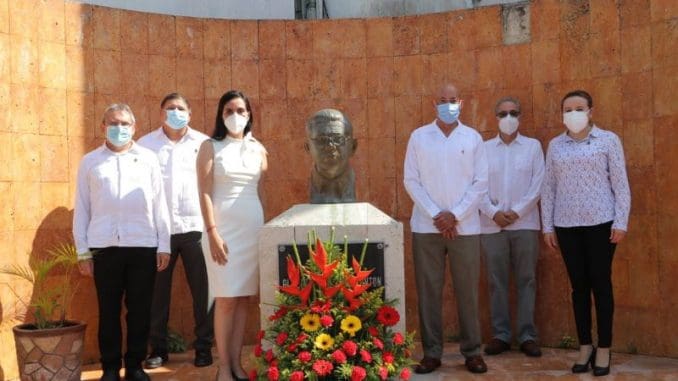 Durante la ceremonia se depositó una ofrenda floral ante la efigie del ilustre investigador japonés que da nombre al CIR-UADY, quien fue médico, bacteriólogo e investigador que trabajó en Yucatán a principios del siglo XX en las instalaciones del Hospital Agustín O’Horán.