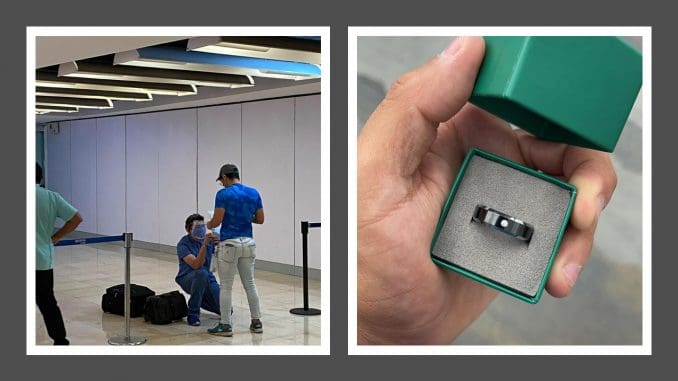 Mérida, Yucatán, 15 de julio del 2021.- El yucateco René González Puerto y Jezreel Pantaleón García, oriundo de Puebla, ambos con discapacidad auditiva y de lenguaje, se comprometieron ayer en el aeropuerto de Houston, Texas.