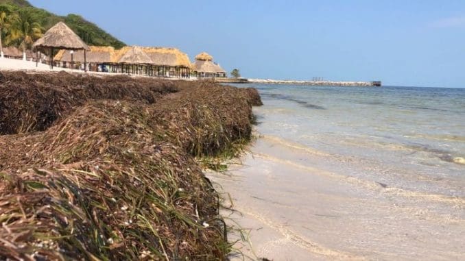 Pasto marino invade playa bonita, en Campeche