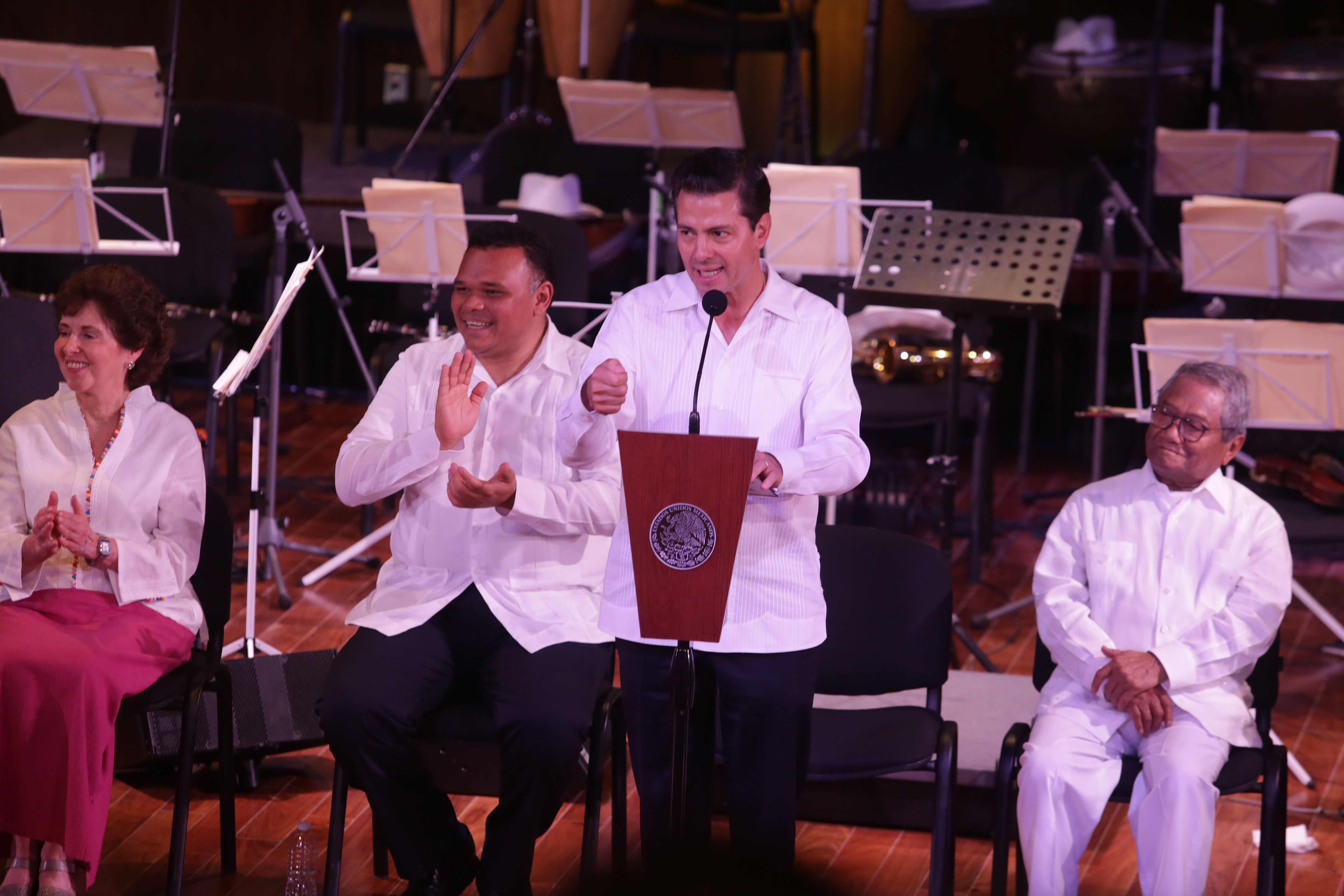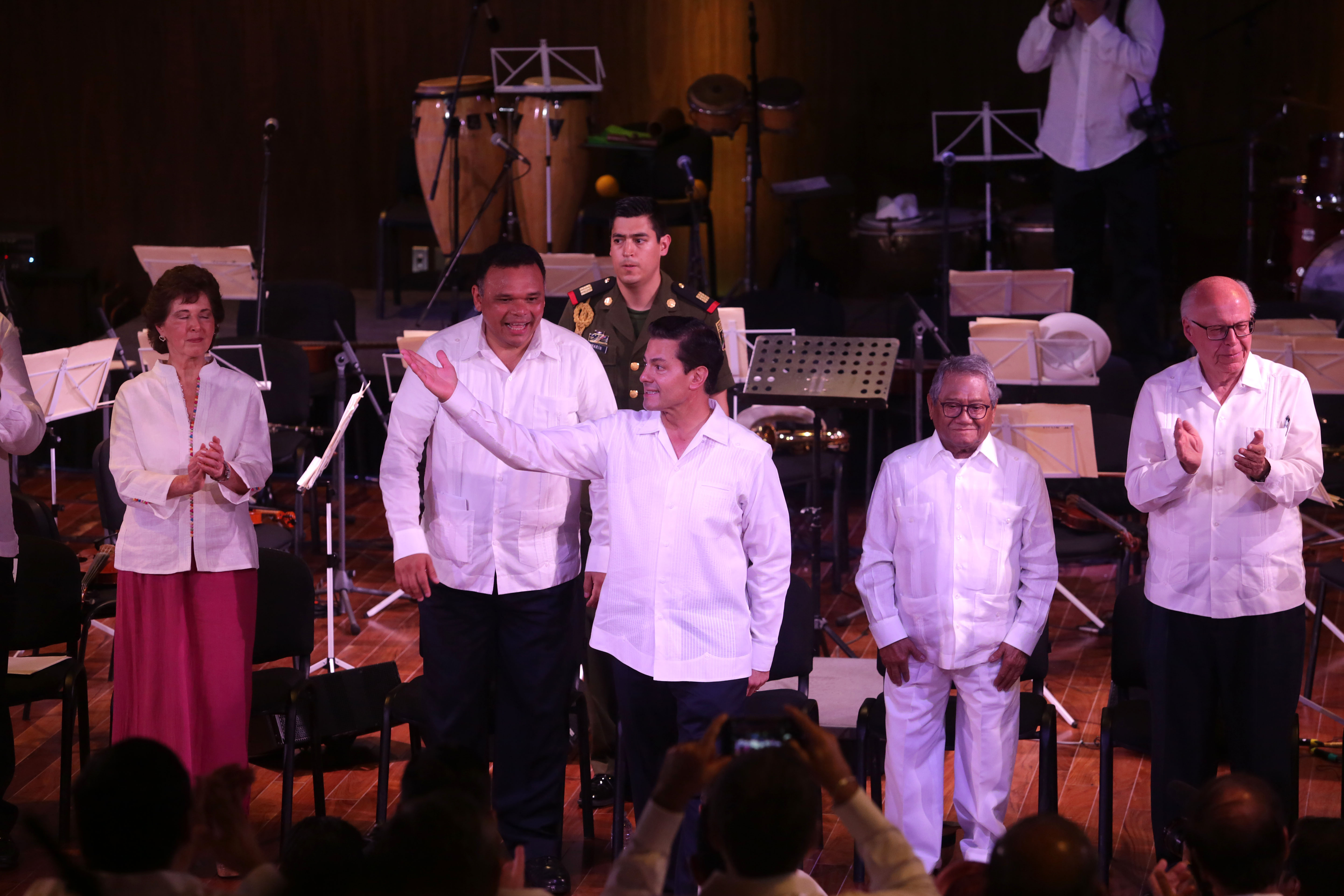 Luego del evento protocolario, el presidente junto con la secretaria de la Cultura, María Cristina García Cepeda, el de Salud, José Narro Robles, y el gobernador Rolando Zapata, se sentaron para disfrutar, junto con los asistentes reunidos en el auditorio, de un breve concierto del cantautor yucateco Armando Manzanero.
