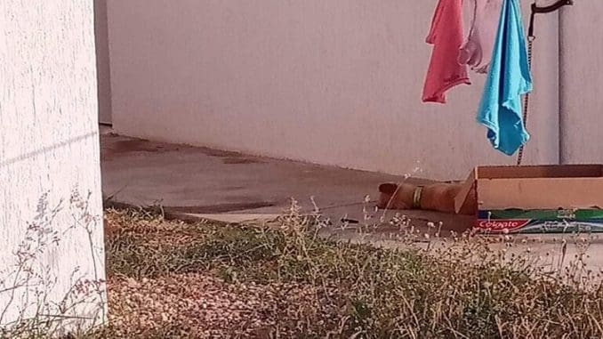 A través de redes sociales se viralizó la foto del animalito que tenía una cadena corta que apenas le permitía ocultarse parcialmente del sol, pero al avanzar el día ya no tuvo más protección y recibió de lleno los rayos del astro rey.