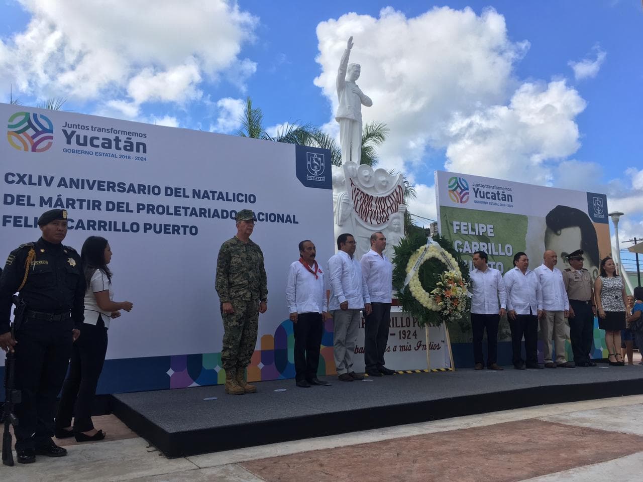 Vecinos de Motul se manifestaron durante el acto conmemorativo por el natalicio de Felipe Carrillo Puerto