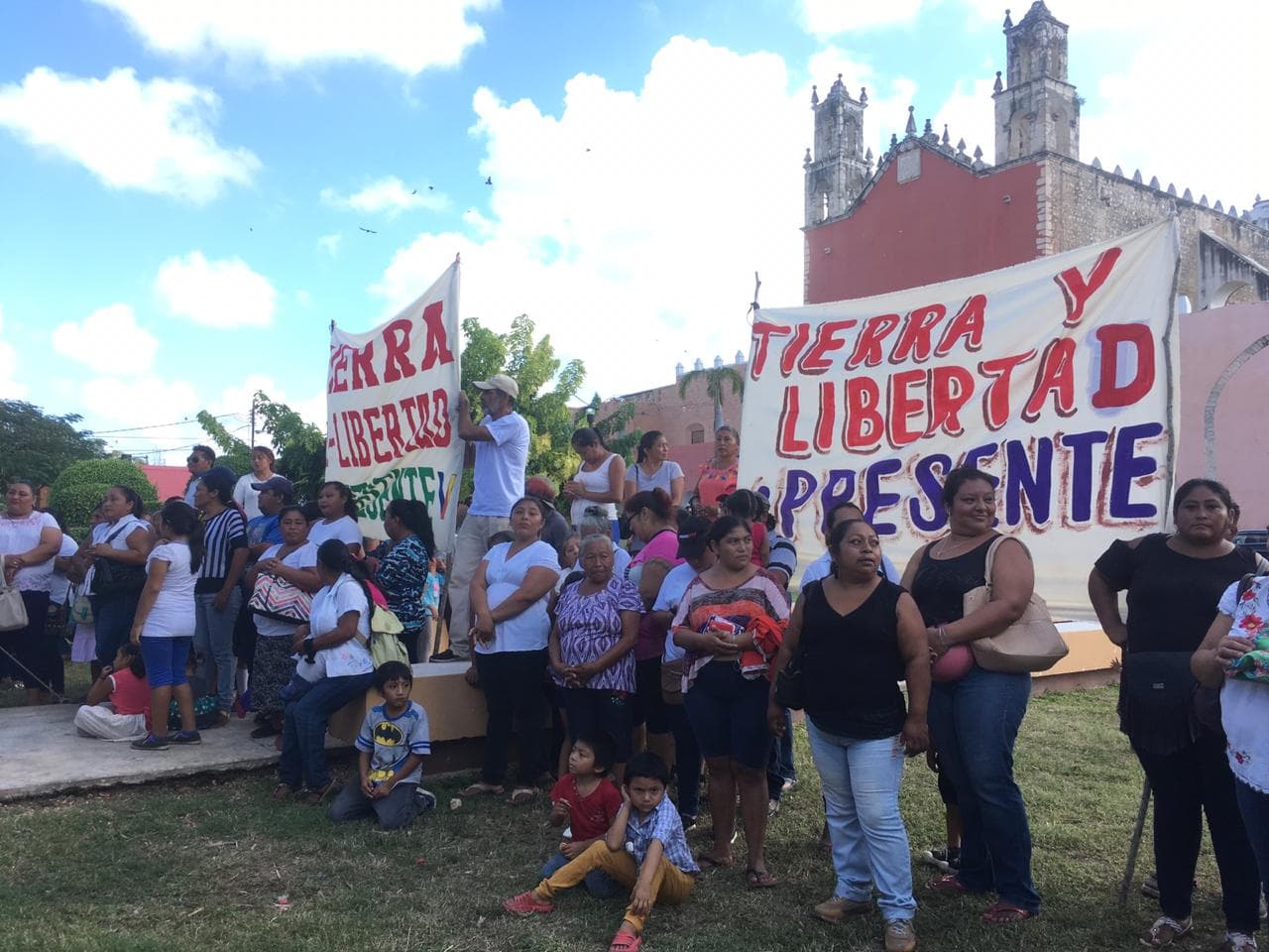 Motul, Yucatán, 8 de noviembre del 2018.- Vecinos de la colonia “Tierra y libertad”, de Motul, se manifestaron en el acto realizado en la plaza cívica de dicho municipio para conmemorar al CXLIV aniversario del natalicio de Felipe Carrillo Puerto, para solicitar al gobernador Mauricio Vila Dosal su apoyo para la regularización de las tierras en las que viven.
