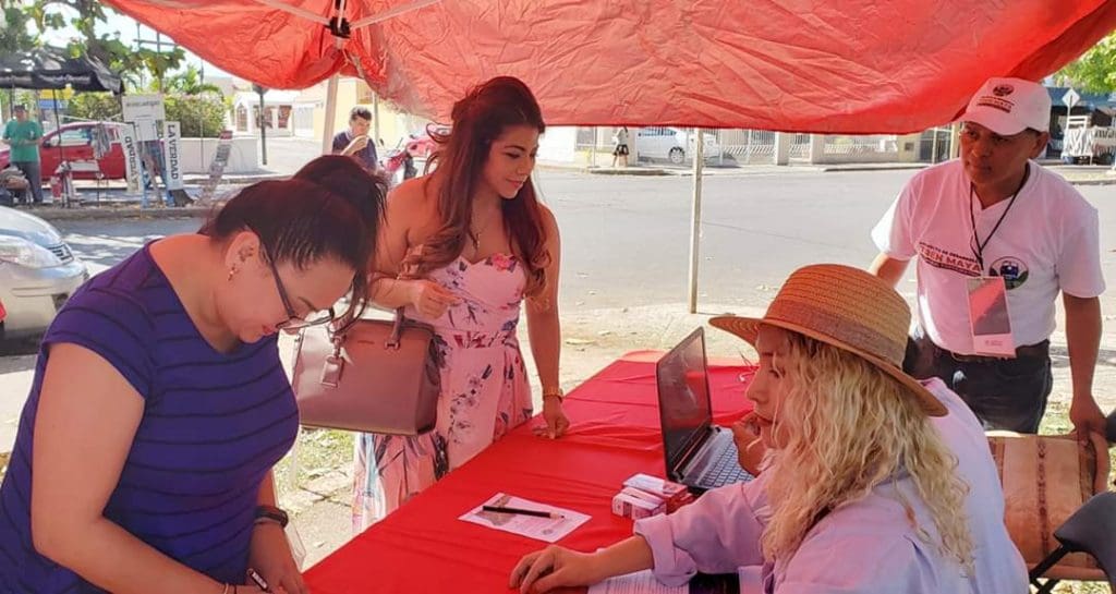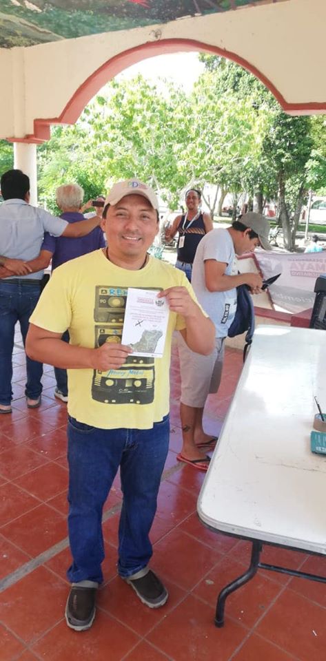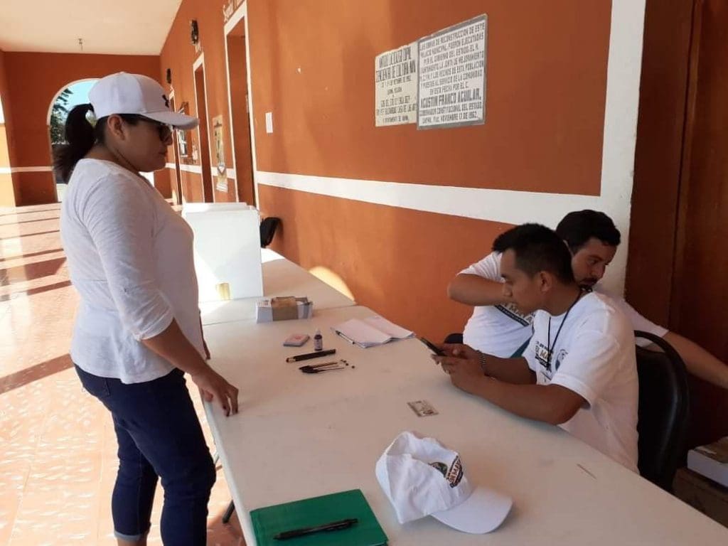 En la comisaría de Kimbilá, Ariel Maza quien funge como servidor de la nación y quien es responsable de la inscripción a varios programas sociales del gobierno Federal informó que la mesa de votación a su cargo abrió a las 8:30 de la mañana.