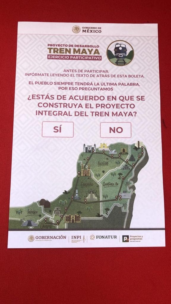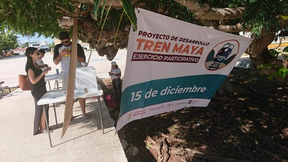 Mérida, Yucatán, 15 de diciembre de 2019.- Con una baja participación, sin la presencia del INE y bajo la observación de la Codhey y la CNDH concluyó esta tarde el proceso de consulta sobre la viabilidad del tren maya.