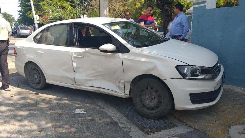 Mérida, Yucatán, 29 de enero del 2020.- Un Vento de color blanco que transitaba sobre la calle 16 de la García Ginerés fue impactado por un Uber Versa sobre la avenida Colón que no vio que un conductor del carril central le cedió el paso.