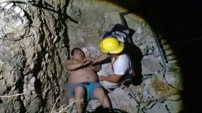 Llegó la unidad 1001 de Protección Civil municipal, a cargo del director Juan Antonio Puc Maldonado, quien junto a dos elementos más se dieron a la tarea de bajar para auxiliar al joven.