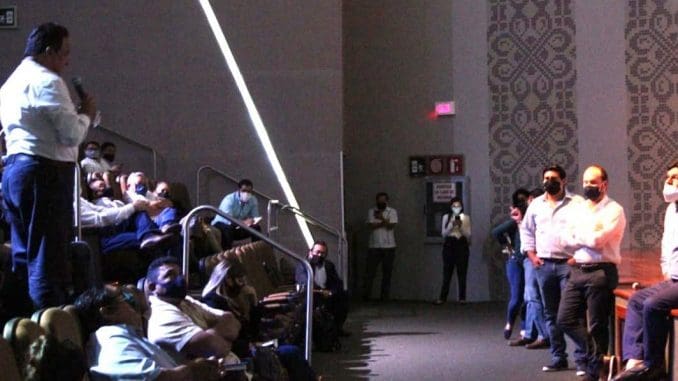 Los funcionarios estatales se reunieron con más 94 alcaldes yucatecos, quienes fueron organizados en tres bloques, de alrededor de 30 participantes cada uno, cumpliendo con las medidas sanitarias dispuestas y la sana distancia, encuentros que tuvieron como sede la Sala Mayamax del Gran Museo del Mundo Maya.