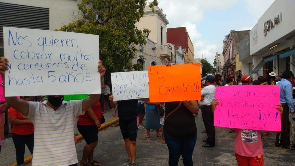 Los inconformes, la mayoría de los cuales viven en la zona sur de la ciudad de Mérida, señalaron que además de los constantes apagones que tienen que sufrir, ahora aseguran que la CFE los acusa de robarse la luz por lo cual les está cobrando fuertes cantidades de dinero.