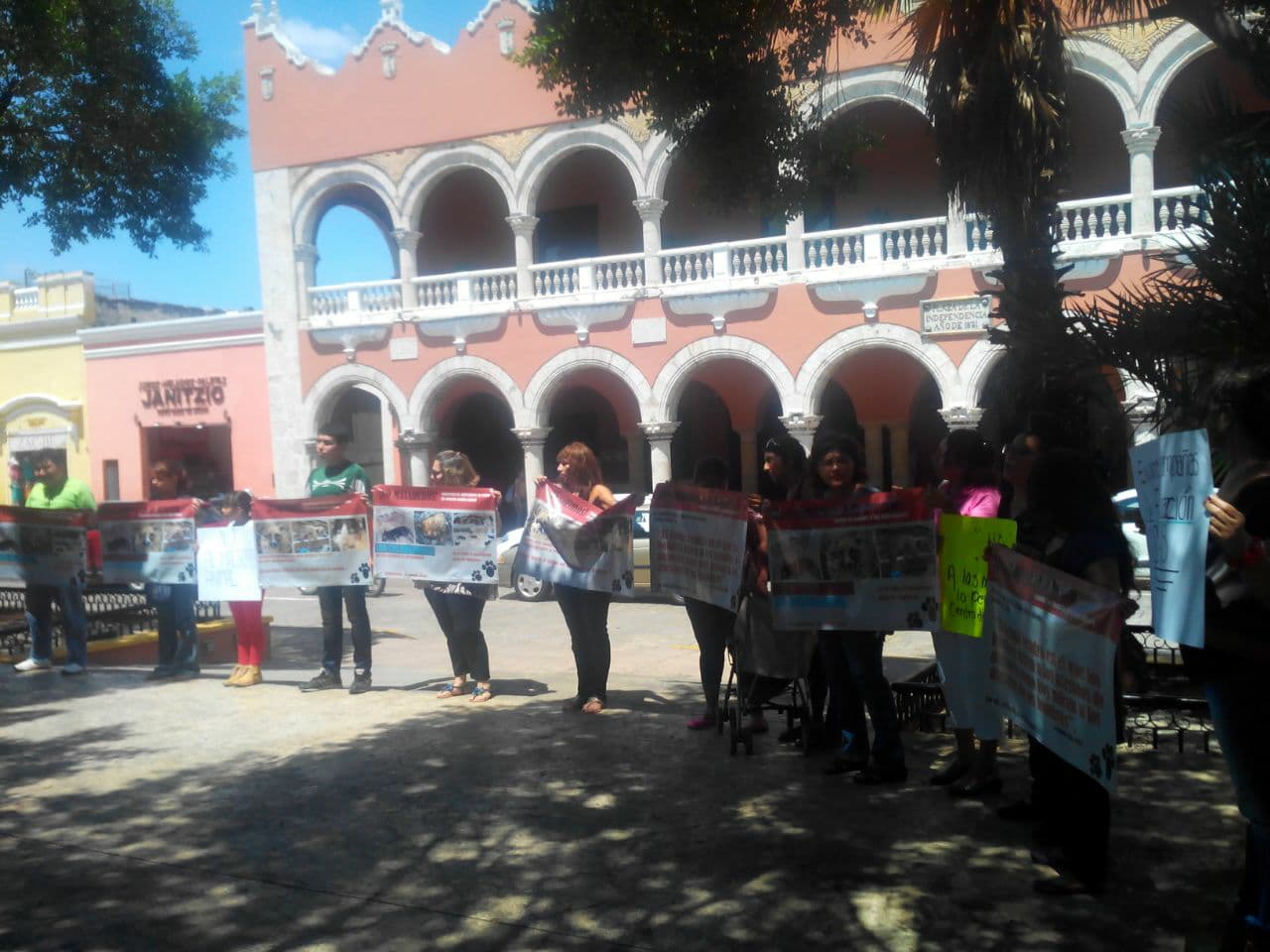 Mérida, Yucatán, 28 de abril de 2018.- Aproximadamente 15 personas protestaron frente al Palacio Municipal de Mérida para exigirle a las autoridades mejores condiciones para los animales callejeros que se encuentran en la perrera municipal, así como tomar medidas para que no se les maltrate ni sacrifique en esas instalaciones.